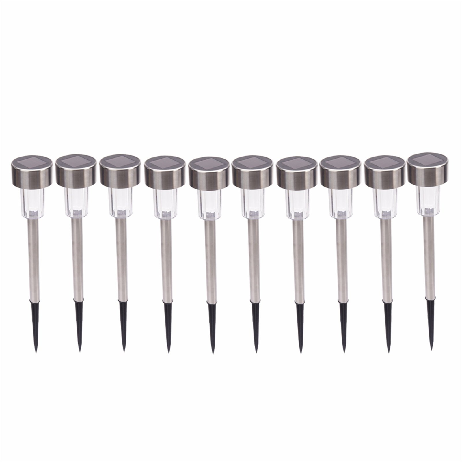 Introductions:The lamp we'd like to share today is in tube style, made with high-class stainless steel & ABS & plastic materials as well as delicate workmanship. So, for both durability and reliability, you can trustingly rely it. This LED lamp, powered by solar energy, is much clean and eco-friendly to use. Insert the cusp end into ground outdoors, it will stand steadily. Emitting bright white light, this lamp could well guide your directions. Such a practical lamp is much suitable for garden or yard. Our 10pcs Solar Power LED Lawn Lamps with Lampshades deserve your buying!Features:1. Low power consumption and energy-saving2. Low voltage, no flicker, no glare3. Powered by solar energy, it is harmless to environment4. With cusp end, it can firmly insert into ground for stable standing5. Super bright and long-lasting, easy to install6. Come attached with lampshades for both beauty and protection7. Widely used in greenhouse, landscape lighting, home garden, or small pot plant etc.Specifications:1. Material: Stainless Steel & ABS & Plastic2. Color: White & Silver3. Weight: 25.04oz / 710g4. Dimensions: (14.57 x 2.07)" / (37 x 5.25)cm (H x D)5. Voltage: 1.2(V)6. Light Source: LED7. Light Power: 0.06W8. Solar Panel: 2V 40MAH9. Sunshine Duration: 8-10h10. Light Color: WhitePackage Includes:10 x LED Lamps10x Lamp Shades10x Lamp PolesNOTE:Please check the battery in it. Put on the light, when you put them under sunshine.