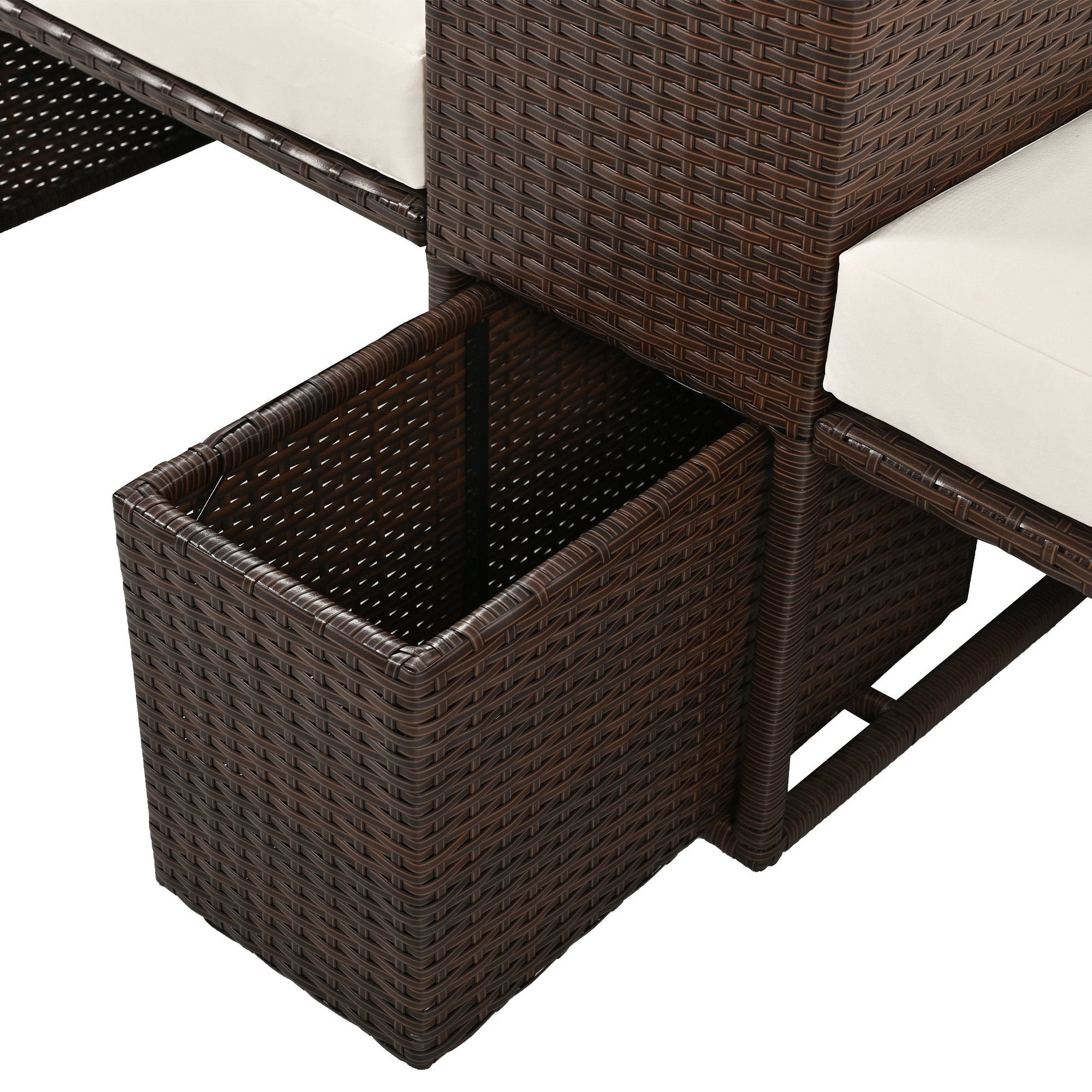 5.All-Weather & Sturdy Material - Made of iorn frame, this patio daybed set is sturdy and stable enough for long time use. Made of premium hand-woven rattan that is weather-resistant, waterproof, and durable, ensuring long-term outdoor use. So you never have to worry about rain, or cold climates.