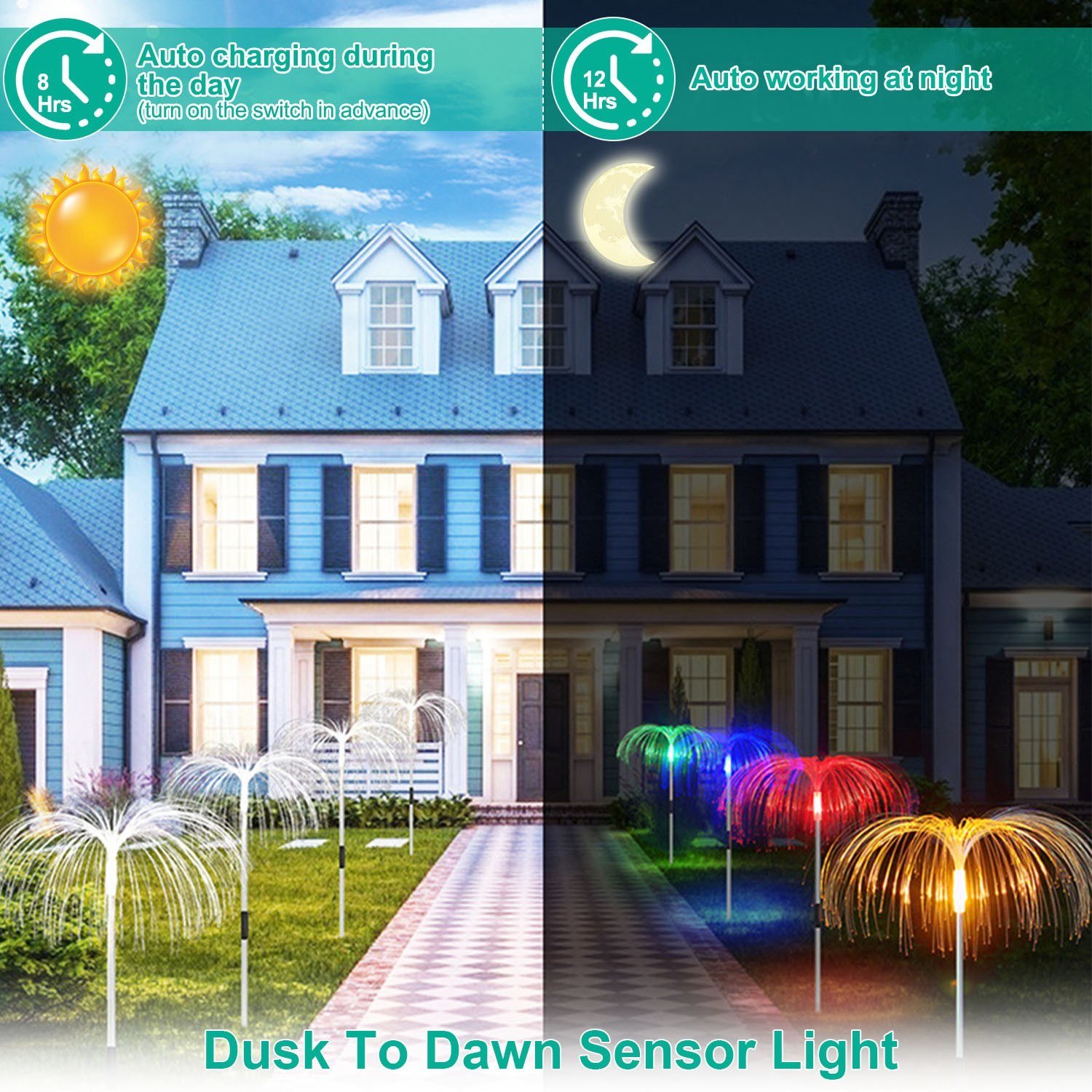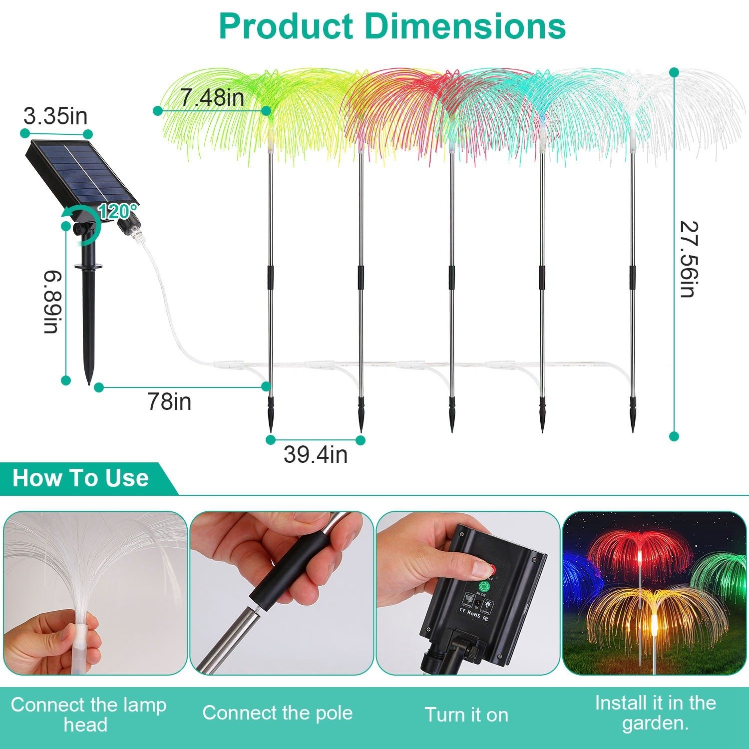 *8 Lighting Modes & Timer*:8 Dynamic lighting effects create a romantic atmosphere; including combination; in waves; sequential; slow glowing; chasing; slow fade; twinkle; and steady on. Besides; 5 vibrant colors also help drive away monotony and breathe new life into the garden. You can freely adjust the lighting mode via the remote control. For longer service life; you can set the timer(3hrs/5hrs/8hrs) in advance and it will automatically turn off in late night.