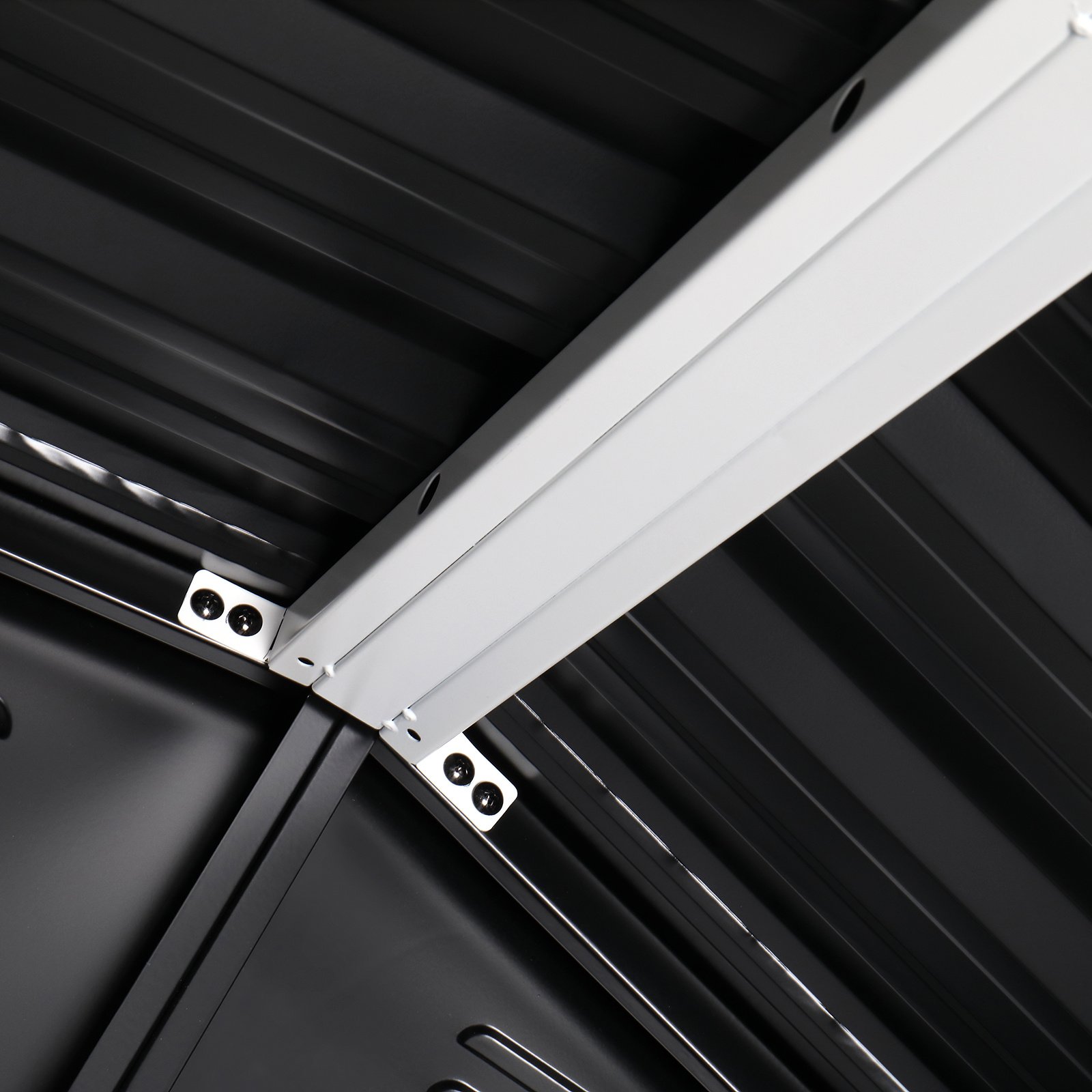 Introductions:Maximize your outdoor storage possibilities with our 6 x 4 FT Outdoor Storage Shed. Constructed with robust galvanized iron, this storage house is the perfect solution for organizing all your garden tools, lawn care equipment, and pool supplies. Its compact yet spacious design ensures it fits comfortably in your backyard or patio without compromising on storage capacity. The elegant black finish complements any outdoor setting, making it not just a practical storage solution but also a stylish addition to your outdoor space.Features:1. Spacious Storage: Ample room for storing large equipment such as lawnmowers, bicycles, and pool accessories, ensuring your outdoor space remains tidy and organized.2. Ventilation & Drainage: Built-in air vents on both sides to enhance airflow and prevent odors; designed with small drainage holes to avoid water accumulation, keeping your equipment dry and clean.3. Efficient Roof Design: The slanted striped roof ensures quick drainage during rainy weather, preventing water accumulation and leakage.4. Double Sliding Doors: Features large double sliding doors for easy access, even for larger items such as bicycles and lawn mowers, complete with a lockable latch for added security.5. Durable Construction: Made from corrosion-resistant galvanized iron, offering a stable and sturdy structure that can be anchored down for lasting outdoor use.Specifications:1. Color: Black2. Material: Galvanized Iron3. Dimensions: 48.6 x 76.8 x 73.2 inPackage Includes:1 x Outdoor Storage Shed