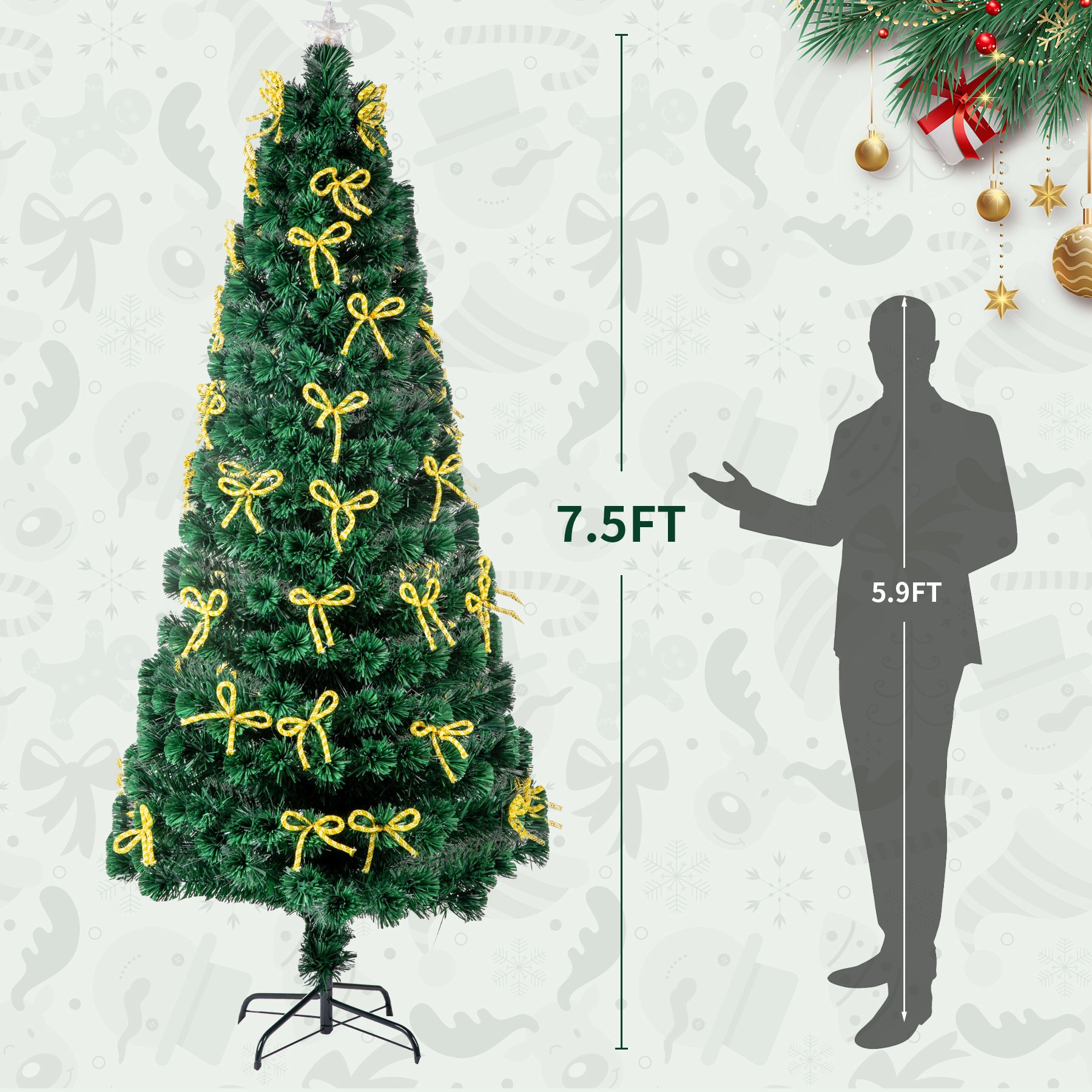 7.5ft Pre-Lit Fiber Optical Christmas Tree with Bow Shape Color Changing Led Lights&300 Branch Tips