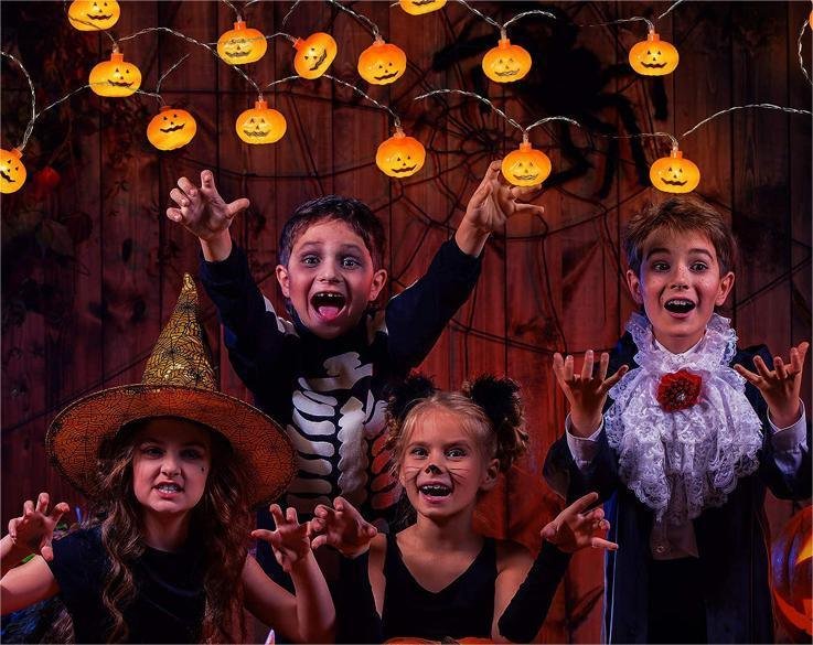 This is a Halloween decoration jack-o '-lantern led string of lights battery box party Halloween jack-o' -lantern string.There are six models of this product; including the battery box model with 10 lights of 2m; 20 lights of 3m and 20 lights of 5m; the USB and 8-mode remote control battery model with 20 lights of 5m and the remote control USB model.Please pay attention to the choice of model when you select and purchase.This product is made of plastic; with a color temperature of 3000k and a life of about 50; 00h. The size of a single jack-o '-lantern is about 1.57*1.18inch. It can be used for the decoration of living room; bedroom; yard; electric couple; bar; party; Halloween; Thanksgiving and other occasions and festivals; which can help you create an atmosphere!